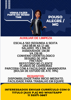 Será responsável pela limpeza e conservação de uma empresa no ramo de medicamentos, fara limpeza de salas, produção, banheiros, vestiários, varrer áreas externas, retirada de lixos e etc.