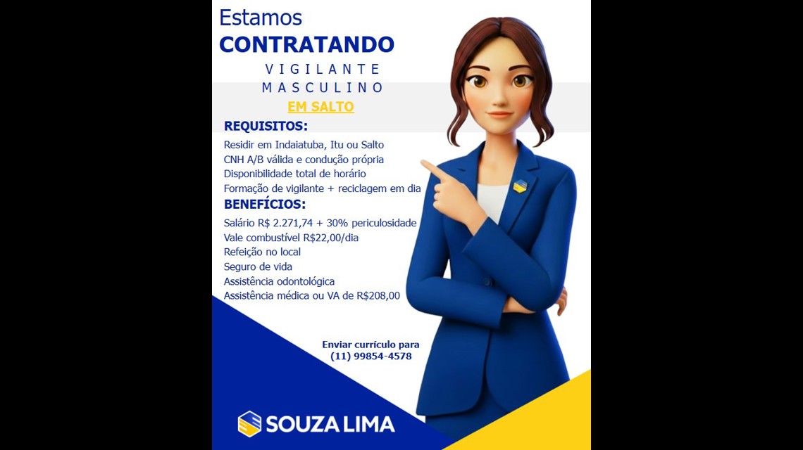 🚨 SOUZA LIMA CONTRATA – VIGILANTE MASCULINO | SALTO 🚨